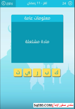 جواب لغز مادة مشتعلة من 5 حروف من لغز 11 رمضان من لعبة رشفة رمضانية صقور الإبدآع