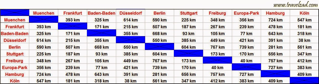 المسافات بين مدن ألمانيا برلين بريمن درسدن دورتموند فرانكفورت كايسرسلاوترن كولونيا لايبزيغ سكسونيا هامبورغ كونستانس