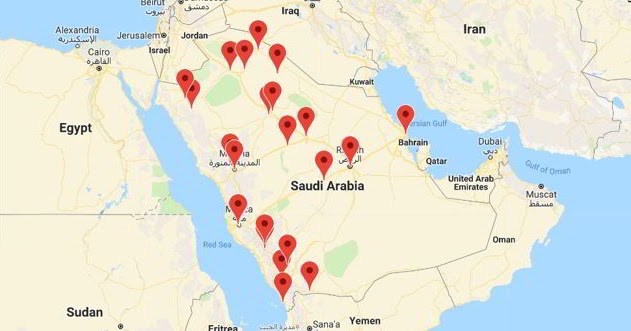 جدول المسافات بين المدن فى المملكة العربية السعودية
