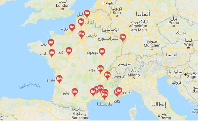 خريطة فرنسا بالعربي بالمسافات المرسال