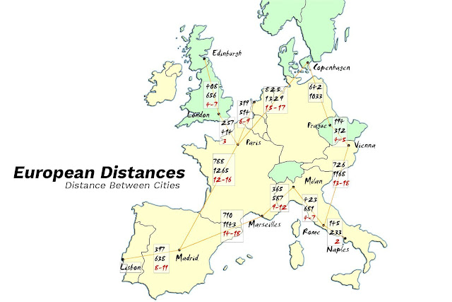 المسافات بين المدن الاوروبية بالكيلو متر Distance Between European Cities مجلة رحالة