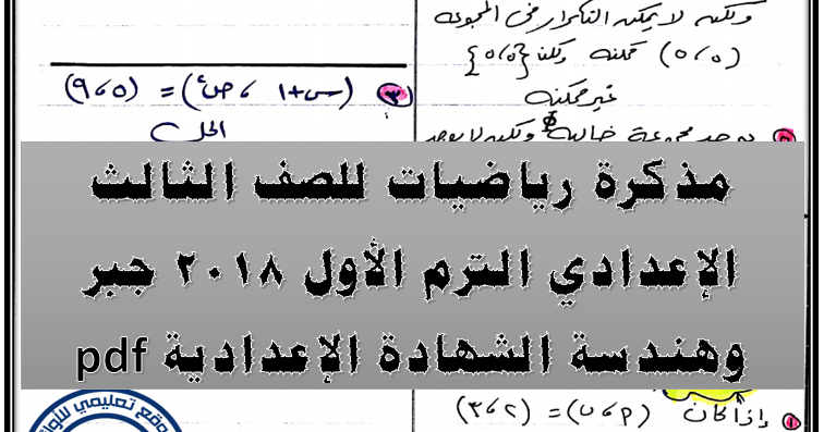 مذكرة رياضيات للصف الثالث الإعدادي الترم الأول 2018 جبر وهندسة الشهادة الإعدادية Pdf