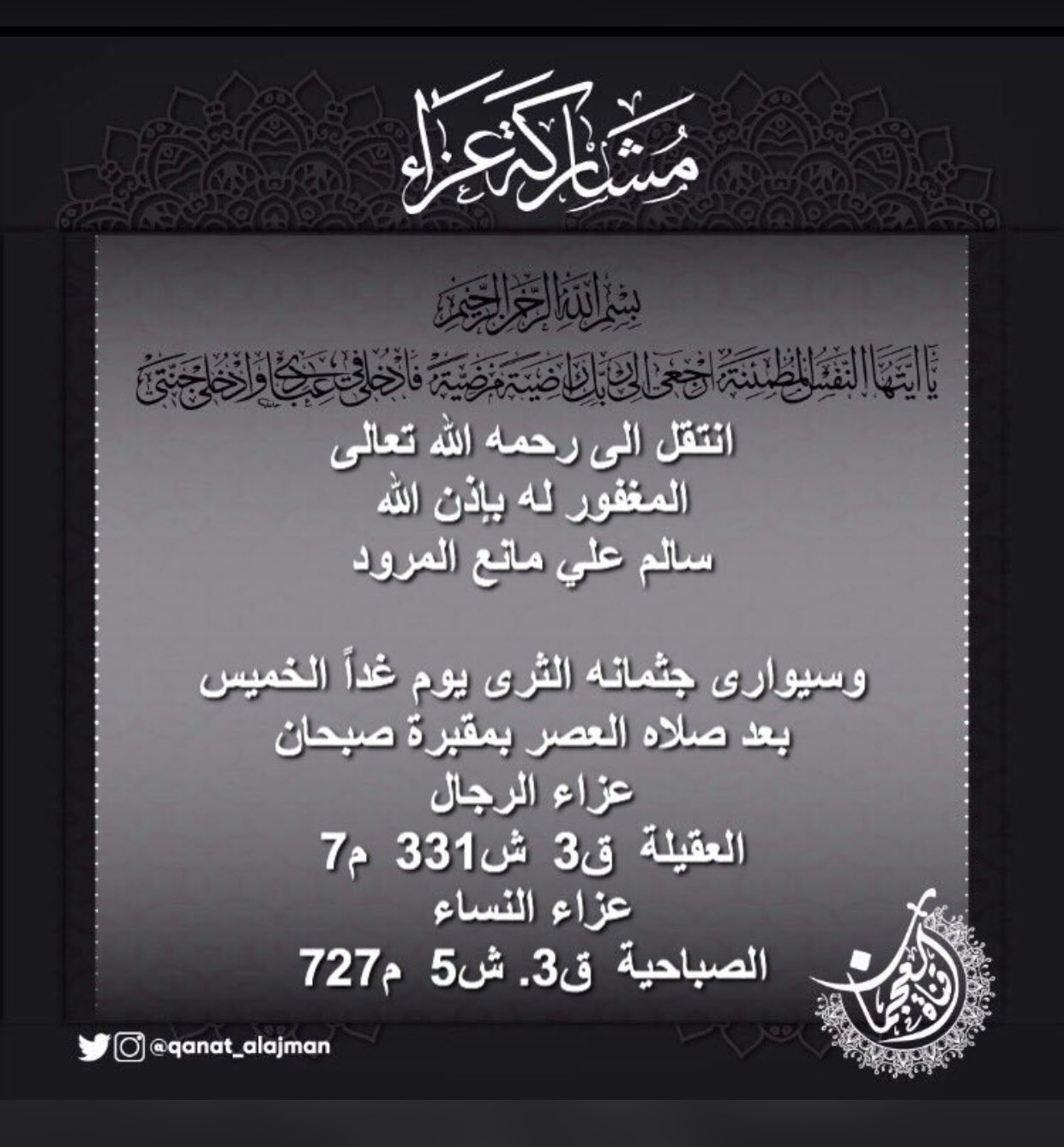 خدمات السفراني Alsafrani انتقل الى رحمة الله اخي شافي ندى العجمي