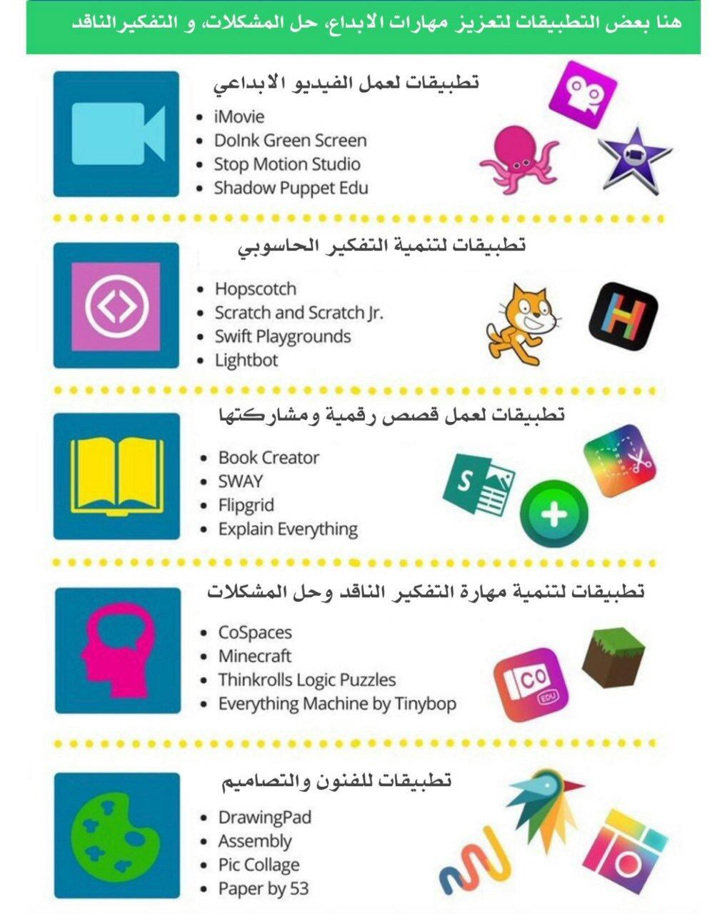 قروب القمة التعليمي On Twitter انفوجرافيك تطبيقات تساعد المتعلمين على أستغلال أوقاتهم على الجوال بتنمية مهارات التفكير الإبداعي والناقد والحاسوبي ورفع الحس الفني Https T Co M1vm4szjlb