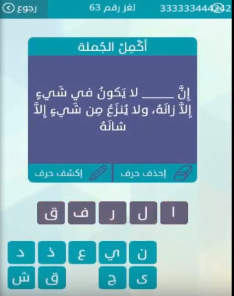 جواب ان لا يكون فى شئ الا زانه ولا ينزع من شئ الا شانه لغز رقم 63 من لعبة وصلة للمجموعة السا صقور الإبدآع