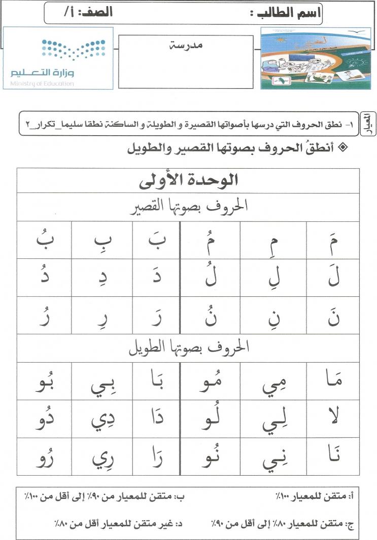 أوراق تقييم لغتي حسب المعايير الجديدة الفترة الأولى أول أبتدائي ف1 لعام 1437هـ منتدى التعليم توزيع وتحضير المواد الدراسية