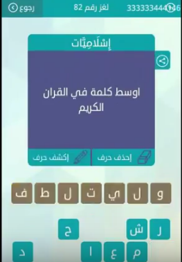 جواب لغز اوسط كلمة فى القران الكريم لغز رقم 82 من لعبة وصلة للمجموعة العاشرة صقور الإبدآع