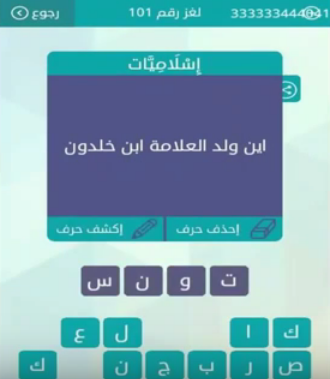 حل لغز اين ولد العلامة ابن خلدون من لعبة وصلة المجموعة الثانية عشرة لغز رقم 101 صقور الإبدآع